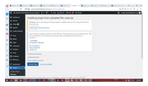 The plugin starts installing as shown in the diagram below and upon complete installation there is an activate button right below to request that the plugin be activated.
